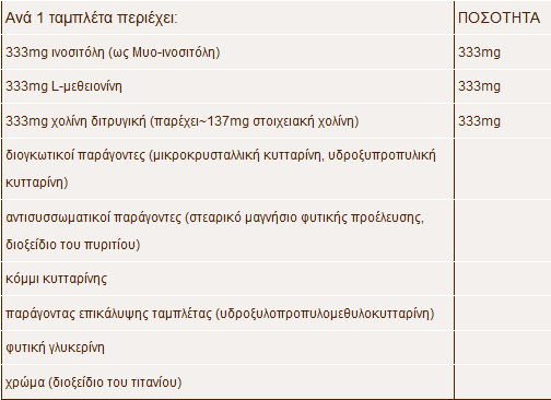 - Φόρμουλα που συνδυάζει Χολίνη, Ινοσιτόλη και L-Μεθειονίνη