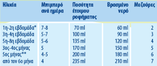 Η ποσότητα κατανάλωσης ανά μπιμπερό μπορεί να διαφέρει κατά περίπτωση. Οι συνιστώμενες ποσότητες κατανάλωσης και ο αριθμός των μπιμπερό ανά ημέρα είναι ενδεικτικές. Το μωρό σας δεν χρειάζεται να εξαναγκαστεί να αδειάσει το μπιμπερό.