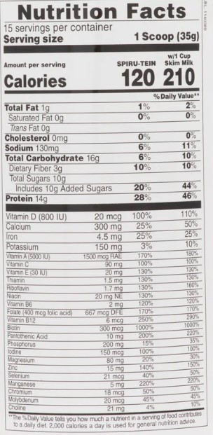 Φόρμουλα πλήρους πρωτεΐνης από σόγια (κυρίως), ρύζι, μπιζέλι και σπιρουλίνα. Oλική πρωτεΐνη 41%. Περιέχει, επίσης, βιταμίνες, μέταλλα, ιχνοστοιχεία, φυτικές ίνες, λεκιθίνη, ένζυμα, λιποτροπικές ουσίες .
