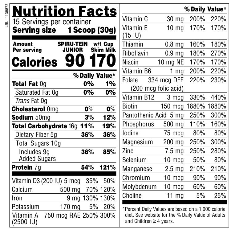 Η γνωστή φόρμουλα Spiru-Tein προσαρμοσμένη στις ανάγκες των παιδιών .