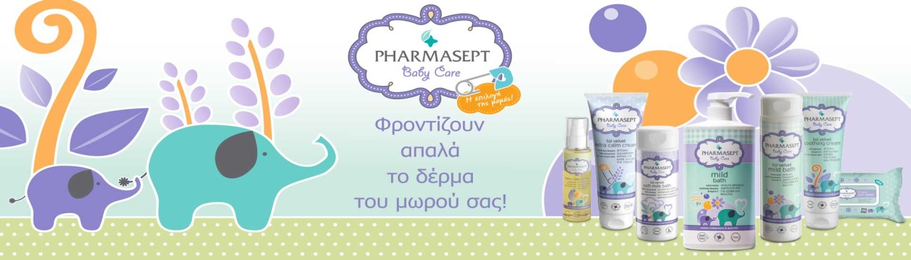 Η Pharmasept είναι ένα αμιγώς ελληνικό brand, το οποίο προσφέρει καλλυντικά και εξειδικευμένες φόρμουλες απαλλαγμένα από συστατικά που προκαλούν αλλεργίες, parabens και χρωστικά. Τα προϊόντα της είναι ιδανικά τόσο για την προσωπική σας περιποίηση (καθαρισμός, ενυδάτωση, ολοκληρωμένη φροντίδα δέρματος) όσο και του μωρού σας με την κλινικά μελετημένη σειρά Tol Velvet – Baby Care.
