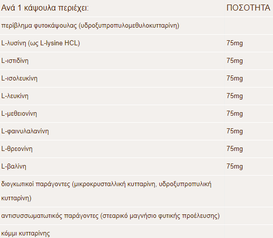 Το Solgar® Amino 75 Essential Amino Acids συνδυάζει τα 8 βασικά αμινοξέα L-Λυσίνη, L-Λευκίνη, L-Φαινυλαλανίνη, L-Βαλίνη, L-Μεθειονίνη, L-Ιστιδίνη, L-Ισολευκίνη και L-Θρεονίνη για μια ολιστική προσέγγυση που προσφέρει πλήρες φάσμα αυτών των βασικών θεμελίων της πρωτεΐνης. Αυτή η περιεκτική φόρμουλα χορηγείται μία φορά την ημέρα και εμπεριέχεται σε Φυτοκάψουλες για εύκολη κατάποση.