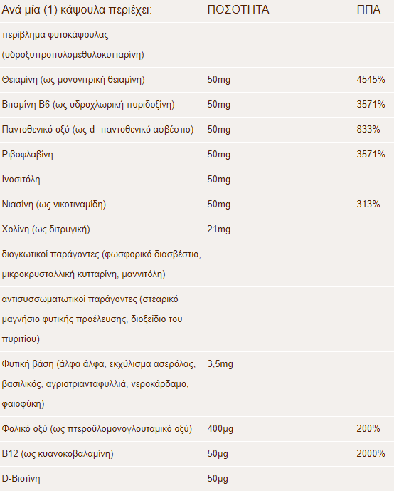 • Σύμπλεγμα βιταμίνης Β ιδιαίτερα υψηλής δραστικότητας που βοηθά στην απελευθέρωση ενέργειας από την τροφή