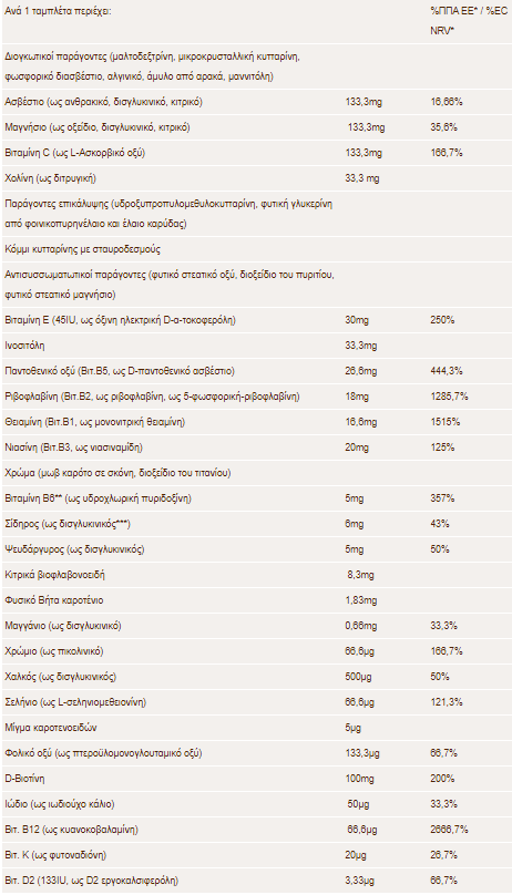 **Μακροχρόνια λήψη ποσότητας Β6 που αντιστοιχεί σε 3 ταμπλετες, μπορεί να οδηγήσει σε αίσθημα μυρμηγκιάσματος και μουδιάσματος.