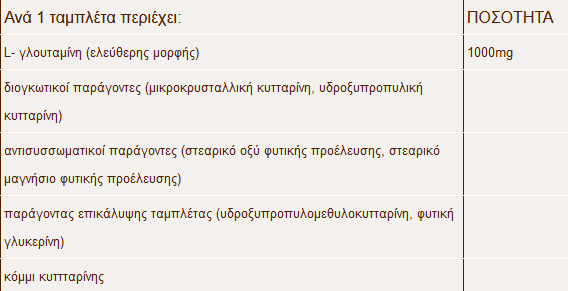Οι φυσικές πηγές γλουταμίνης είναι μοσχαρίσιο κρέας από ζώα που τρέφονται με χορτάρι, ψάρι ελεύθερης αλιείας, τυρί κότατζ, σπαράγγι και μπρόκολο. Ακόμα κι όταν συμπεριλαμβάνετε τροφές πλούσιες σε γλουταμίνη στη διατροφή σας ή χρησιμοποιείτε σκόνη ορού γάλακτος, μπορεί να σας ωφελήσει η λήψη συμπληρώματος. Το Solgar® L-Glutamine 1000 mg καταναλώνεται με 1-2 Ταμπλέτες καθημερινά.